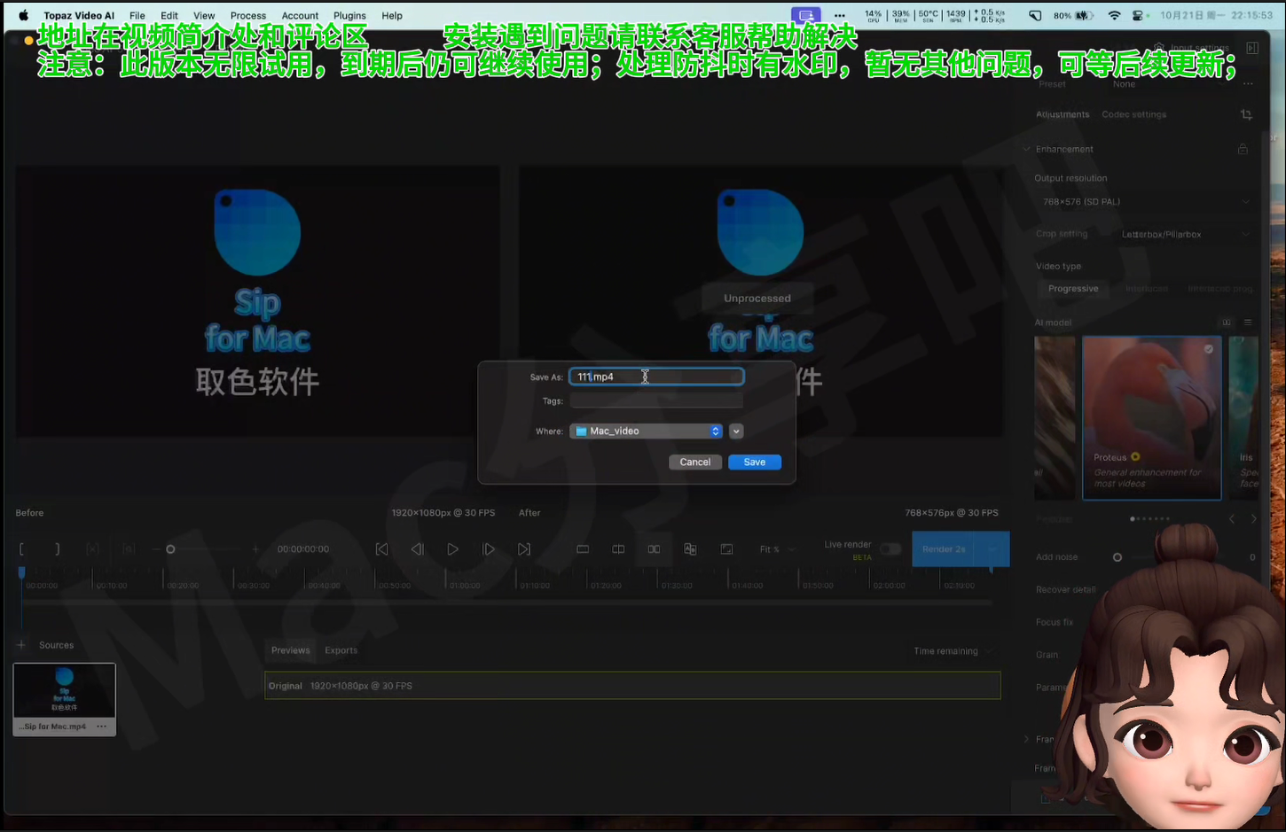 Topaz Video AI,是一款专业的AI视频无损放大软件,使用时间信息有效提高视频质量和细节,从而达到最好的视频放大、去隔行、降噪和还原效果,另外还允许通过片段选择、处理模型和尺寸比率选项来自定义视频输出。同时支持多种视频格式的导入和处理,无论是常见的MP4、AVI格式,还是高清的MOV、MKV格式,都能轻松应对。